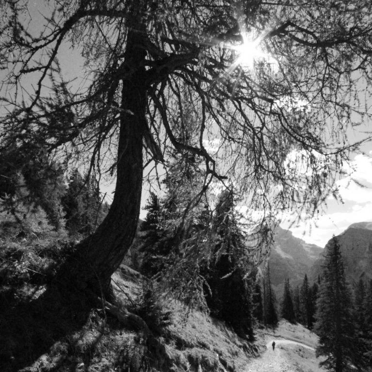 Se penso ai larici mi emoziona ricordare quelli di Forcella Lerosa, negli altipiani sopra Ra Stua, un mondo di bellezza naturale ricordato soprattutto nelle pagine di Giovanni Cenacchi, climber e scrittore di montagna troppo presto scomparso. Sfinito dal cancro in un letto di ospedale, tormentato dal pensiero della malattia, ebbe la lucidità emozionata di scrivere nel suo diario: “Anche dal fondo dell’orrore, non posso non ammettere che il mondo sia uno spettacolo meraviglioso. Un pomeriggio di pioggia su un pascolo in alta montagna. Luce a drappi e a festoni, a colonne e a statue; luce a fiammate, a fontane, in grumi, in polvere iridescente per le stanze del bosco”.