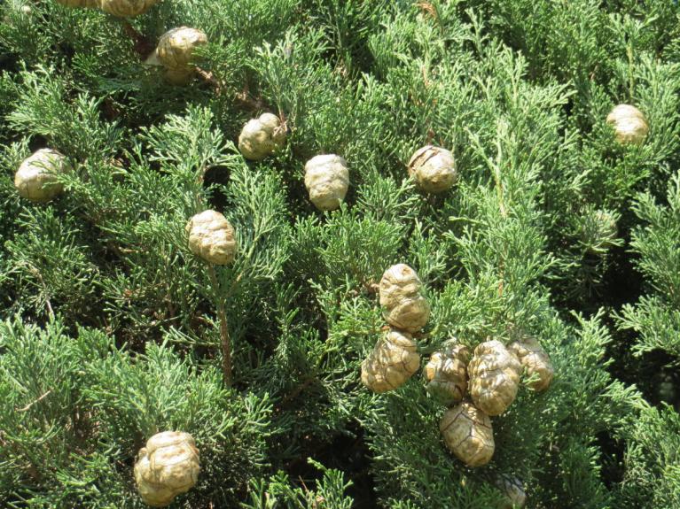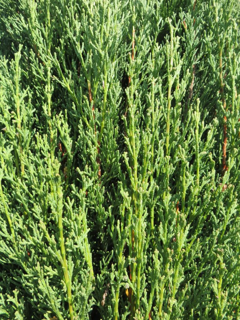 La sagoma eretta e compatta, snella e affusolata, le foglie millimetriche, embricate, fittamente addossate ai rametti, l’aroma resinoso e balsamico lo distinguono all’occhio e al naso. Oltre alla varietà pyramidalis o stricta dal portamento colonnare, è diffusa anche la horizontalis dalla chioma irregolare ed espansa usata spesso per le barriere frangivento, specie in terra d’oltralpe: tutti abbiamo in mente le lingue dei cipressi di Van Gogh che s’innalzano fino alle infuocate volute del cielo notturno o scherzano con le nuvole atlantiche sui campi estivi di Francia.