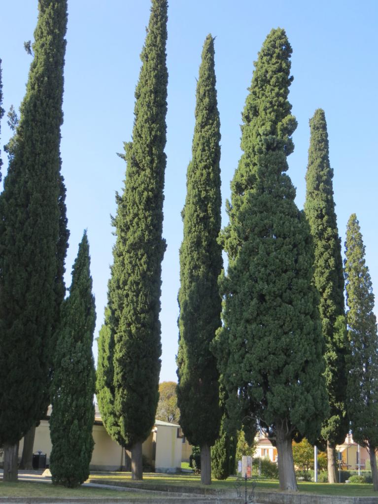 Allora, i cipressetti non erano ancora stati aggrediti dal fungo sterminatore (Seiridium cardinale) che con altri parassiti minaccia da anni la popolazione indigena. Certo, il penchant familiare per tombe e cimiteri, dove gli alberi pizzuti son di casa, deve aver giocato un suo ruolo.