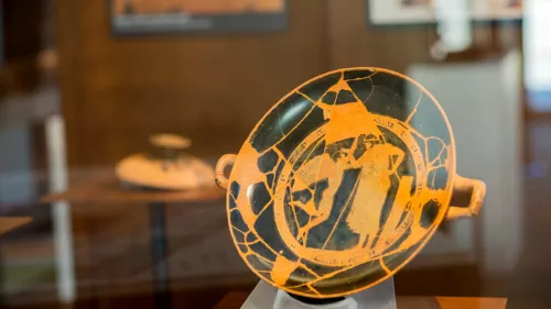 Il museo di Gonfienti riproduce, oltre la superficie nascosta delle tombe a cui ero abituata, con una attenzione filologica straordinaria, la distribuzione degli spazi interni di una casa, disposti intorno a un cortile, con pozzo laterale, delimitato da un portico. Le sale corrispondono agli ambienti domestici ed espongono in primis pezzi di ceramica attica tra cui la coppa cosiddetta di Douris a figure rosse; nella zona dei banchetti e del simposio trovano posto (quasi a riprodurre le stratigrafie degli scavi) il vasellame in bucchero di uso quotidiano, bacili, piccoli piatti, olle, brocche e nell’area dedicata ai riti e alle cerimonie grandi bacili per il vino e tazze-attingitoio con decorazioni stilizzate a figura umana o vegetale.