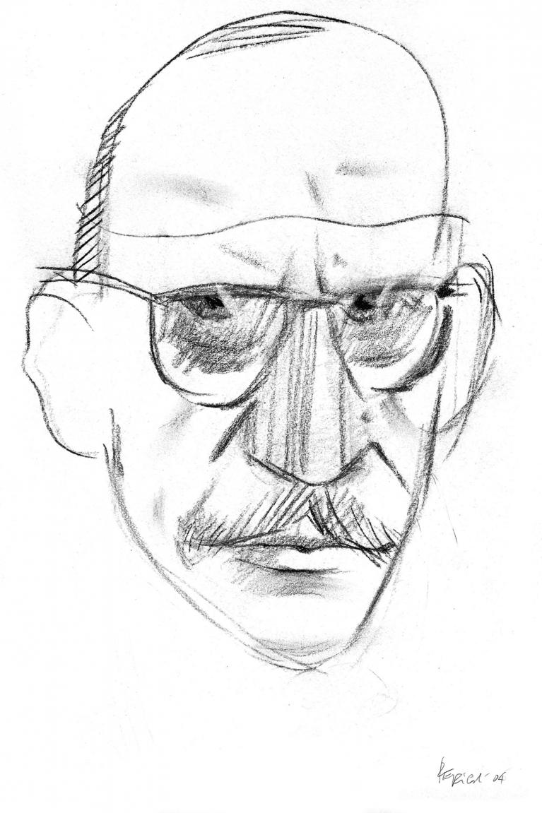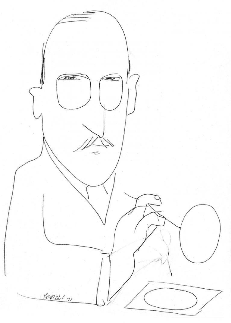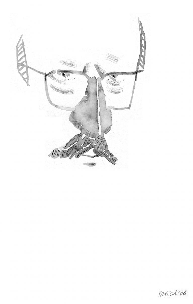 I ritratti di Steinberg non mi vengono molto bene. Gliene ho fatto più di uno, frugando tra le sue foto, ma nessuno mi ha mai soddisfatto pienamente. Il punto è che in un suo ritratto, perché sia proprio vero, non si può non cogliere, insieme ai lineamenti del volto, il carattere della sua mano, delle sue dita, della punta dei suoi polpastrelli. Perfino delle unghie. Del suo corpo intero, insomma. Quindi non è sufficiente guardare le foto e scavare nei segni della sua faccia.