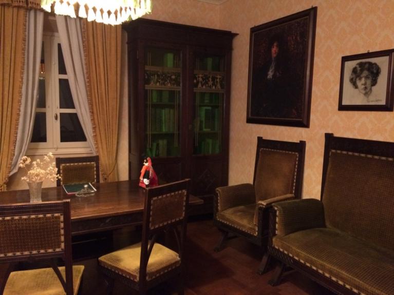 Avverto questo quando un grande libro a muro si apre inaspettatamente e lascia apparire una stanza con i mobili del salotto della casa romana. Non senza incongruenza, la finezza di un pur spartano mobilio della Capitale, benché costruito in Sardegna, contrasta singolarmente con la nudità della casa. Racchiuso tra questi muri, appare d’improvviso. Allora appare Roma, Roma a Nuoro, laddove la logica del Qui vorrebbe: o Nuoro o Roma.