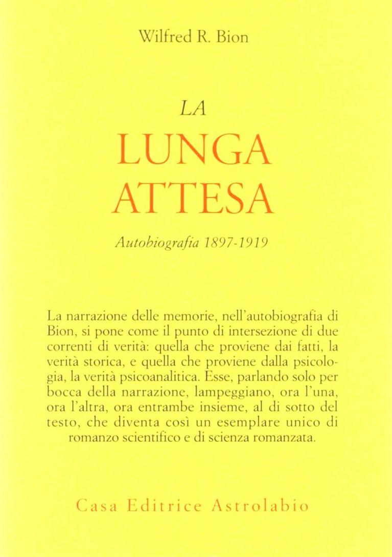 Wilfred Ruprecht Bion è nato a Muttra, in India, nel 1897. In La lunga attesa si presenta come un bambino pauroso e frignone, si considerava un pappamolle mai all’altezza delle aspettative paterne. I suoi ricordi ruotano intorno alle due grandi cesure della sua infanzia e giovinezza. La prima è il trasferimento, intorno agli otto anni, dalla natia India (che rimarrà sempre un luogo mitico) a un collegio vittoriano dell’Inghilterra di inizio secolo, accompagnato da una madre algida che lo lascia inesorabilmente solo davanti alla porta. La seconda è, appunto, la partenza per la guerra come volontario. Il bambino fifone si rivelerà un soldato coraggioso, insignito di una medaglia al valore, di cui tenderà sempre a svalutare l’importanza. Ma riuscirà a entrare a Oxford per studiare storia proprio perché considerato un eroe, anche se lui si sente ignorante e stupido. Farà poi medicina e psichiatria, nel 1932 inizia a lavorare alla Clinica Tavistock, quando scoppia la seconda guerra è assegnato, come ufficiale medico, insieme al suo terapeuta di allora, John Rickman, all'ospedale militare di Northfield, dove verranno incaricati del supporto ai militari colpiti da PTSD. I suoi metodi di cura, le sue idee sullo shock e sulla psicologia della guerra non saranno considerati adatti alla disciplina militare e nonostante i successi con i soldati – Bion si rifiuta di trattarli come carne da cannone da rimandare al fronte –, non farà carriera e non avrà alcun riconoscimento. Invece delle batterie di test per selezionare ufficiali, introduce la tecnica del “Gruppo senza leader”. Mentre è in Normandia scopre di essere diventato, insieme, padre di Parthenope e vedovo, perché la moglie muore pochi giorni dopo il parto.