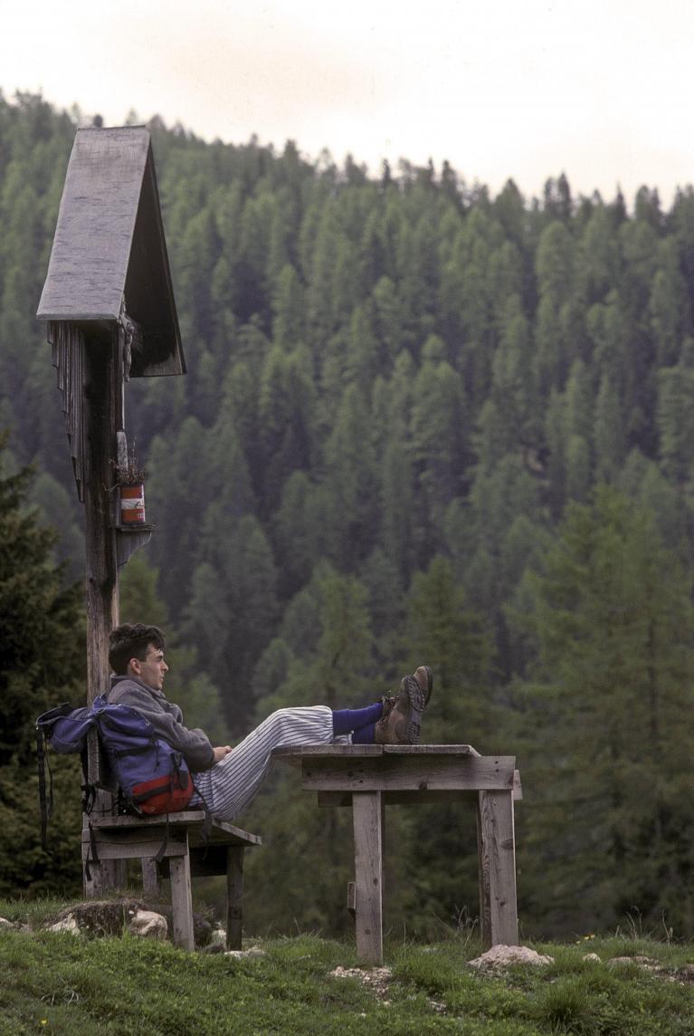 Nel 1994, Giovanni prese casa a San Candido in Val Pusteria, e iniziò un’accurata esplorazione “cenacchiana”, sia geografica sia antropologica, di quella porzione di montagne che lo portò a pubblicare nel 1998, con Zanichelli, un’ottima guida escursionistica, e non solo. In Dolomiti di Sesto e di Braies e dintorni, definì “divagazioni” l’esplorazione di ambienti poco noti e solitari, anche se non necessariamente difficili da raggiungere. Ancora una volta, Cenacchi ricorda il Lago di Fosses, negli altipiani sopra Ra Stua: uno specchio azzurro tra ampie distese di pascoli e rocce sovrastato dalla Remeda Rossa, il monte che pare un cane bassotto: “Divagazione molto consigliata”.