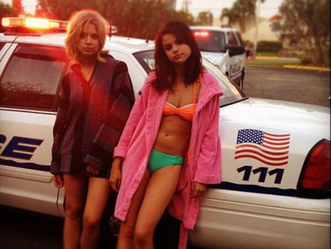 Spring Breakers di Harmony Korine, uscito ieri nei cinema italiani dopo la presentazione in concorso all’ultima Mostra di Venezia, è una commedia noir coloratissima e in acido, tirata a lucido e fichetta, su quattro ragazzine del college che passano in Florida le vacanze di primavera, lo spring break del titolo, una pausa nel calendario scolastico americano diventata nei decenni un punto fisso per la cultura adolescenziale americana, un momento di follia collettiva a base di sesso, alcol, stupefacenti e musica hip hop. Per arrivarci, alla vacanza dei sogni in quell’orribile paradiso di cemento, piscine, motel e perenne sole a rosso d’uovo che è la Florida, le protagoniste non guardano in faccia nessuno: derubano armi in pugno un fast food e una volta sul posto ci prendono gusto, diventando prima le pupe di un gangsta-rap bianco e poi delle eroine del crimine.