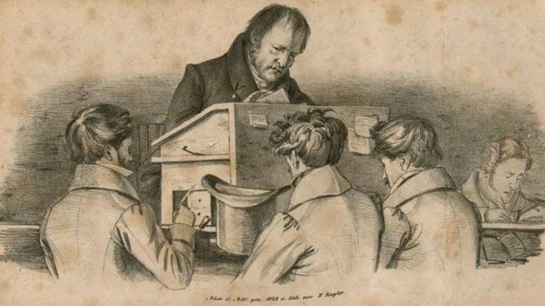 Il 27 agosto di duecentocinquant’anni fa nasce a Stoccarda Hegel. Alcuni mesi prima, il 20 marzo, è nato a Lauffen am Neckar, nello stesso principato del Württemberg, Hölderlin. I destini del più grande filosofo dell’idealismo tedesco e del più grande poeta del Romanticismo tedesco s’incrociano, dal 1788, all’università, nel Seminario teologico protestante di Tubinga, dove stringono una forte e profonda amicizia, che, successivamente, sarà estesa a un altro compagno di studi, più giovane di cinque anni, precoce e geniale, quando questi farà il suo ingresso nello Stift: Schelling. Il carteggio mai interrotto tra i tre, negli anni in cui, subito dopo la laurea, si avventurano nel lavoro precario di precettori, in diverse città (non senza nuovi ricongiungimenti momentanei: prima tra Hegel e Hölderlin, a Francoforte; poi tra Hegel e Schelling, a Jena) testimonia di questa amicizia fraterna che si nutre della condivisione di idee, speranze e progetti e, forse, del sentimento di corrispondere a una missione generazionale. Il cemento iniziale dell’amicizia è, infatti, il fervore per le idee della Rivoluzione francese, coltivate in un club politico nato segretamente nello Stift di Tubinga e di cui diventano membri. Sulla scia di Hölderlin, che già incomincia il suo inseguimento sulle tracce degli antichi dèi “fuggiti” dal mondo moderno, i tre faranno di Dioniso, il dio dilaniato e “risorto” come il Cristo, il loro patrono rivoluzionario, simbolo della rinascita e dello spirito giovanile, e in suo tributo si scambieranno ritualmente, sovente, calici di vino come regalo (uno di questi, l’ha visto chi scrive allo Schiller-Nationalmuseum di Marbach).