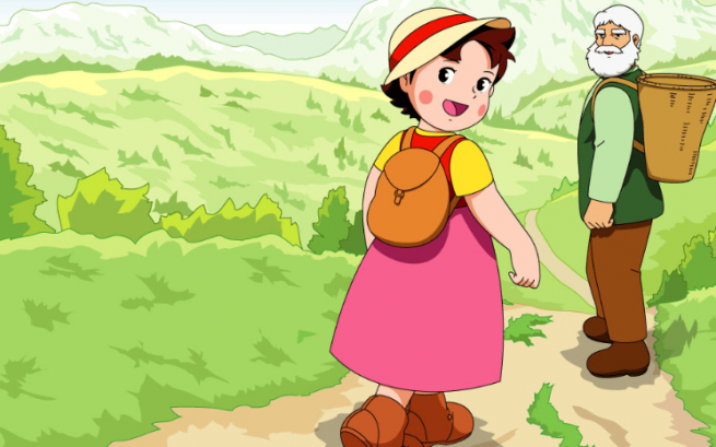 Venendo a noi. Heidi, come si diceva, ritorna a essere protagonista del palinsesto. E assume immediatamente una riconoscibilità all’interno della galassia di proposte dedicate ai più piccoli, posizionandosi in relazione ad esse. Vale la pena notare come in questa ritrovata collocazione emerga una caratteristica forse sostanziale: se la maggior parte di programmi e serie tv in programmazione sui nuovi canali tematici rivolti all’infanzia rappresentano soluzioni originali di riarticolazione delle dinamiche famigliari (abbiamo visto Peppa e la sua famiglia allargata, la Pimpa con il suo discorso sulla paternità, i Barbapapà con il loro spirito di adattamento etc.), Heidi non fa eccezione, costruendosi come un grande narrazione sul ruolo dei nonni nell’educazione dei bambini. Sì, perché, lo si ricorderà, sempre per i casi della vita, la nostra eroina si ritrova a essere orfana affidata dalla zia al “vecchio dell’Alpe”, tenebroso nonno paterno, abitatore della montagna in solitudine e, per giunta, in conflitto con gli abitanti del villaggio più vicino. Si capisce che la sequenza di opposizioni che caratterizzano il plot della serie – natura/cultura, comunità/società, tradizione/modernità, autenticità/finzione, passato/presente – viene presa in carica nella dinamica relazionale e di parentela fra i personaggi.