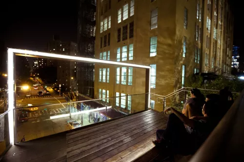 Ciò che la rende veramente interessante e rilevante è il suo essere un (nuovo) gigantesco occhio sulla città. Questa sua qualità oculare è evidente a metà del secondo segmento, laddove la Viewing Frame (o Viewing Spur) accaparra tutta l’attenzione dei visitatori. La Viewing Frame è un rettangolo metallico che dirige lo sguardo verso la 26ma Strada e su uno squarcio della città. Una panchina-tribuna invita le persone a sedersi e godere per un tempo indeterminato dello spettacolo scopico. L’imponente cornice ricorda il formato classico delle immagini fotografiche, degli schermi cinematografici, nonché le dimensioni delle billboards, le insegne pubblicitarie dell’epoca in cui nacque la vecchia Highline (quella che era prevista per il trasporto merci). La cornice vuota collega la Viewing Frame con lo strumento rinascimentale del velo o reticolato, utilizzato da artisti e architetti.