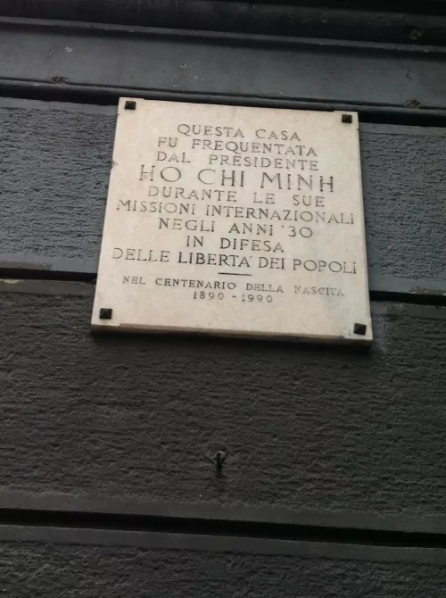 La targa, che ricorda la presenza del capo nordvietnamita a Milano, si trova in Viale Pasubio all’altezza del civico 10 che corrisponde al ristorante Antica Trattoria della Pesa. Il nome gli viene dal fatto che lì vicino c’era la pesa daziaria in corrispondenza dell’ingresso in città a Porta Volta. Ho Chi Minh ha abitato in quella casa, ma la targa non ricorda cosa facesse in quella casa “durante le sue missioni internazionali negli anni ‘30”. Viveva al piano superiore dell’edificio e lavorava al piano terra presso la signora Calatti, antica proprietaria del ristorante. Il futuro leader vietnamita lavorava infatti alla Pesa. Non si sa bene se fosse cameriere o invece cuoco. Qualcuno propende per questo ruolo. Neppure è noto quanto tempo sia restato in quella casa e per quanto tra i tavoli o ai fornelli della Pesa. Resta il fatto che Milano sia stata una città accogliente con gli immigrati dall’Oriente. Non lontano da lì, in via Canonica, si era installata una comunità cinese negli anni Venti del Novecento, che lavorava la seta e commerciava con Como. Il futuro fondatore del Viet Minh, il movimento politico che ha conquistato il potere attraverso una dura lotta con Francia e Stati Uniti, è stato un grande viaggiatore: in quegli stessi paesi che avrebbe poi combattuto e in Gran Bretagna, oltre all’Italia. A Parigi aveva probabilmente imparato il mestiere di cuoco che ha esercitato nella sua tappa milanese. Oggi che il mestiere di cuoco è molto in auge, forse andrebbe riscoperto questo passato del politico vietnamita, che ha fatto propria una celebre frase di Lenin secondo cui dopo la rivoluzione proletaria anche una cuoca avrebbe potuto dirigere lo stato.