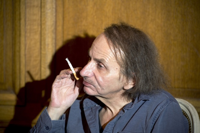 Lo so che dire di uno scrittore che è lucidissimo e molto intelligente può suonare anche come un’offesa (meno che se dicessi il contrario, però), ma che ci posso fare: Houellebecq è proprio questa l’idea che dà, fuori di ogni dubbio. E comunque io non la considero un’offesa. Non varrebbe nemmeno la pena di fare queste osservazioni se lui stesso non avesse sempre giocato, in modo palese o velato, come a nascondino, con la propria immagine, recitando apertamente vari ruoli, a volte tanto provocatori e ributtanti da renderlo persino simpatico, senza contare il suo talento. Sotto questo aspetto si inserisce a pieno titolo, e direi con passo trionfante, nel glorioso solco della tradizione dei vecchi Léautaud e Céline, lerci misantropi, ai quali non ha nulla da invidiare nemmeno quanto a bruttezza, da lui coltivata, da sgamato abitante dell’era dei media, con la squisita arte dell’abbrutimento volontario, assecondando con snobismo una certa predisposizione, accentuata dall’età.