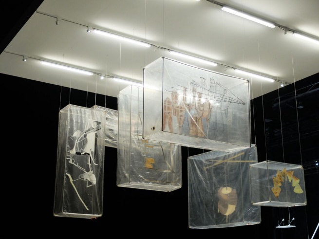 Parreno lascia intendere che ogni mostra accade contemporaneamente in un momento preciso della storia, sia personale sia collettivo, in rapporto continuo con ciò che è accaduto prima e ciò che avverrà dopo, sia con lo spirito del luogo scelto per esporre, sia con i lavori realizzati lungo l’intera carriera dell’artista, sia con le idee di altri interlocutori. All’inizio dell’esposizione, i sette props (elementi di scena) trasparenti di Jasper Johns, ideati per la performance Walkaround Time (1968) di Merce Cunningham, riproducono le immagini tratte da La sposa messa a nudo dai suoi scapoli, anche (Il Grande Vetro) (1915-1923) di Marcel Duchamp, ovvero una delle opere più complesse e misteriose del XX secolo. Il rimando induce a pensare che forse l’esposizione deve essere messa a nudo dai suoi fruitori, anche, per innescare una trasformazione continua. E già qui viene suggerito il leit motiv della mostra, il rapporto di sospensione tra vari tempi e tra varie intuizioni, entro i fili conduttori che alimentano proiezioni continue, tra memoria e apertura al futuro, immediato e prossimo. Viene data molta importanza alla possibilità di immaginarsi come potrebbero essere le mostre se gli artisti e i fruitori fossero sempre meno interessati alle singole opere, agli oggetti, al loro valore. E apre anche al valore aggiunto di un dialogo e confronto con il lavoro e le idee di un curatore con lo sguardo evoluto come Andrea Lissoni. I ruoli dell’artista e del curatore qui sono diventati un corpo unico. Le parole chiave per aprire le porte invisibili di Hypothesis sono verbi come “interagire”, “connettere”, “collaborare”, “collegare”, “conversare”, “trasformare”, “ricombinare”: “Ho scoperto l’opera Set elements for Walkaround Time (1968) durante un lavoro con Carlos Basualdo a Philadelphia. La mostra si chiamava Dancing around the Bride. Mi piace il fatto che quest’opera sia frutto di una collaborazione. La mostra era una produzione di cinque artisti (Jasper Johns, Merce Cunningham, John Cage, Marcel Duchamp e Robert Rauschenberg) e il tutto ruotava intorno all’interazione fra questi artisti, e il fatto che la forma non appartiene a una firma ma a una conversazione poetica che questi personaggi – gli scapoli – riuscirono a instaurare.