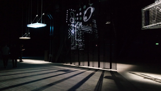 È un’esposizione che contiene altre esposizioni, come fosse una parola-valigia in scatole cinesi, mettendo in discussione il concetto di autorialità. Avviene continuamente un prelievo da lavori precedenti, anche di altri artisti, per far in modo che si venga a creare un sito di produzione e non un luogo chiuso e definito da contemplare dopo la sua inaugurazione: vi sono lavori sonori di Nicolas Becker, Agoria, Rob A.A. Lowe, Mirwais, Antony Hegarty, degli Antony and the Johnsons, di amici e collaboratori di Parreno, che, per diversi anni e in altre mostre, sono entrati nello spirito del progetto, creando materiale che è stato utilizzato nell’Hangar Bicocca di Milano. È riprodotta anche una performance sonora di Tino Sehgal. Il film Anywhere out of the Word (2000) deriva da No ghost just a shell, un progetto in collaborazione con Pierre Huyghe, dove la protagonista è un personaggio manga, libero da copyright. A Liam Gillick è affidato il compito di ricreare un sole artificiale che si sposta da est a ovest, attraversando lo spazio espositivo con binari sospesi. Il potentissimo faro proietta anche le ombre dei cavi e dei sistemi di allestimento che sorreggono le opere sospese, ricreando una emozionante fantasmagoria in bianco e nero. Il titolo è Another day with another sun (2014), che si mette in relazione diretta con l’installazione site-specific Danny the street (2006-2015), proveniente anch’essa da una mostra precedente, così che la luce artificiale proietti ombre attorno, andando a muoversi sui corpi degli spettatori e sulle pareti e colonne dell’Hangar. Danny è il nome del personaggio creato da Grant Morrison e Brendan McCarthy per la DC Comics, e l’installazione è costituita da diciannove sculture poste parallelamente al suolo, composte di plexiglass, luci e suono.