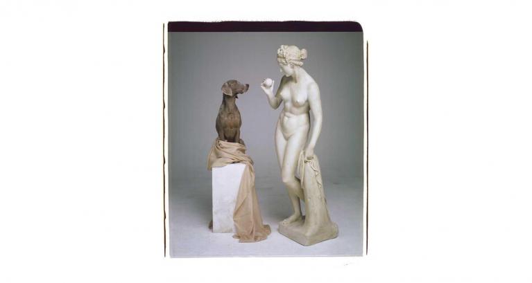 Sono immagini con cui ci sono cresciuti insomma quelli che erano bambini negli anni Settanta. Polaroid, perlopiù, belle, che non si possono non guardare. Perché in quell’immagine c’è qualcosa che è accaduto, qualcosa che noi abbiamo fatto a loro e che loro si sono lasciati fare. I cani sono tra i più affascinanti che si possano immaginare, i grigi elegantissimi Weimaraner con gli occhi d’azzurro perforante. Wegman li ha cominciati a fotografare quando il primo di loro, Man Ray, è entrato in casa sua, sembra contro la sua volontà, era la moglie a desiderare il cane. Ebbene, lo spiega William Ewing, curatore della mostra (e del libro del 2017), da quel momento i Weimaraner diventano la musa di Wegman. Alla musa si attribuisce un’azione nei confronti del poeta, lo aiuta a comporre, a superare il mare in tempesta della creazione. Che fanno in realtà le Muse? Dormono nella testa dei poeti come un’idea tra le idee? O sono le vittime e gli alibi e i falsi doppi degli animi inquieti?