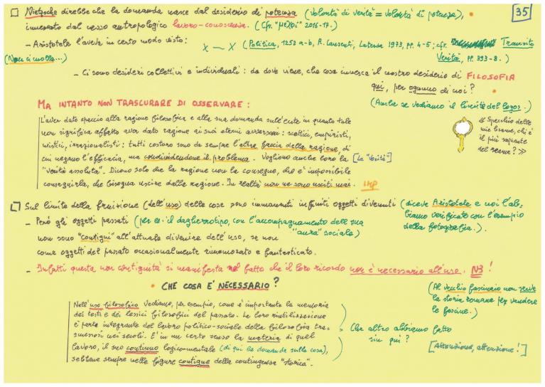 Per datare, invece, quel punto relativamente alla “storia dell’essere” bisogna invece risalire molto più indietro nel tempo. Correndo il rischio di una certa arbitrarietà, ma affidandomi a indicazioni tratte dallo stesso Sini, lo collocherei idealmente «negli anni del grande bilancio e dell’ultimo cammino di Nietzsche», il biennio 1886-1887.  Sono le pagine memorabili della Genealogia della morale (1887) in cui Nietzsche afferma che «noi uomini della conoscenza» siamo «ignoti a noi medesimi», che noi per noi stessi abdichiamo proprio a quella conoscenza che rivendichiamo come nostra dote essenziale. La domanda nietzscheana concerne la comprensione di ciò che facciamo in quanto uomini dediti disinteressatamente alla verità, in quanto “scienziati” nel senso più generale e più nobile di questo lemma. Quando la verità diventa problema per se stessa – perché è la nostra onestà scientifica, scrive Nietzsche, che ci fa dubitare della nostra «volontà di verità» – si pone, ineludibile, il problema della sua raffigurabilità.  «Chi siamo noi in realtà?», chiede Nietzsche: ecco la domanda per rispondere alla quale ad un certo punto Carlo Sini si è messo a tracciare dei “cartigli” sconcertando, non poco, i suoi colleghi che ancora oggi non sanno bene come interpretare quei fogli scritti a mano in vari colori e costellati di miniature tanto eleganti quanto ostentatamente e orgogliosamente infantili nella loro ispirazione.