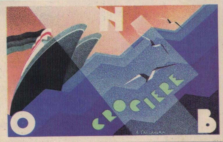 Particolare attenzione dedica Sturani alla figura di Attilio Calzavara, architetto e grafico che, nonostante il suo orientamento liberalsocialista, riuscì ad ottenere lavori dal Ministero dei Lavori Pubblici e dall'Opera Nazionale Balilla. «Gli effetti deformanti da supergrandangolo, il dinamismo di linee oblique, i gabbiani con le ali che paiono schegge, le compenetrazioni di forme, l'antidescrittivismo di un mare che va in salita, il valore cromatico-compositivo delle scritte» descrivono la cartolina futurista che Calzavara dedica alle crociere ONB (p. 63).