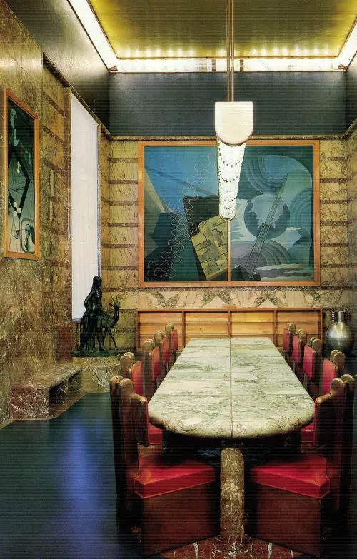Le immagini cromatiche più interessanti riguardano gli interni del Palazzo delle poste di Palermo, inaugurato nel 1934 e per i quali Mazzoni utilizza marmo rosso di Portasanta e di Trapani, marmo giallo di Mori, marmo nero del Belgio, rame e anticorodal per gli infissi, lacche rosse e nere per le porte, marocchino rosso per il rivestimento delle sedie; alle pareti le allegorie futuriste della comunicazione di Benedetta Cappa Marinetti e tele di Tato (Guglielmo Sansoni), aeropittore futurista. A questa varietà gli autori contrappongono un esterno «rigidamente impaginato secondo gli stilemi classici propri dell'architettura aulica del regime fascista» (p. 91); a me non paiono contrapposti, interno ed esterno: i colori, ad eccezione di quelli delle opere pittoriche, sono i colori dei materiali e in questa loro aderenza alle cose, al marmo, al metallo, al legno e alla pelle, aspirano all'eternità, sono costitutivi della monumentalità e della retorica architettonica. A differenza dei colori di Sironi che Renata Pampas ha definito «i colori cupi della dittatura» e che richiamano i colori severi, materici e bruniti dell'arte etrusca e medievale, i colori di Mazzoni citano i colori dell'antico impero, dello sfoggio di potere e di ricchezza in un settore dello Stato sotto suo assoluto controllo, per lungo tempo senza concorsi, nell'Italia della dittatura. Di lì a poco le sanzioni avrebbero imposto i nuovi materiali dell'autarchia: l'Italianeum, nuovo linoleum ricavato dalle bucce di pomodoro scartate dalle industrie di conservazione, l'eternit in forma di lastre ondulate all'amianto (sic), e il cemento «debolmente armato», invenzione di Pierluigi Nervi per risparmiare il ferro che serviva alla guerra (il saggio della studiosa del colore Renata Pampas si trova al sito).