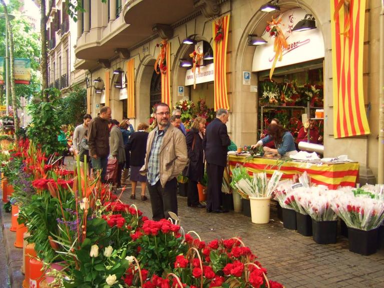 Barcellona, il 23 aprile, si riempie di rose e di libri. Dai marciapiedi nel tardo pomeriggio si solleva l’odore pungente dei petali calpestati; sotto il braccio o dentro borse cariche, molti lettori rincasano con copie di libri firmate dai loro autori preferiti. È la festa di San Jordi (San Giorgio), patrono della Catalogna, di cui spiccano due simboli, due facce. Una è quella del libro: è infatti, a partire dal 1996, dichiarata dall’Unesco, la Giornata mondiale del libro e del diritto di autore. L’altra è quella dell’amore, e quindi della rosa, che, così vuole la leggenda, è fiorita dal sangue fuoriuscito dal petto del drago infilzato dal cavaliere Jordi per salvare la bella principessa.