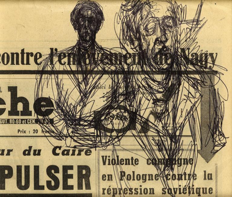 Doppio ritratto di Isaku Yanaihara, 25 novembre 1965. Penna biro su giornale, 16,5 x 20 cm. Courtesy Fondation Giacometti, Paris.