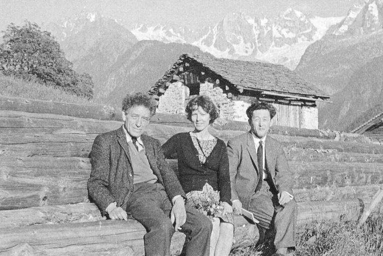 Anonimo, Alberto, Annette Giacometti e Isaku Yanaihara sulle alture di Soglio, 1961. Courtesy Fondation Giacometti, Paris.