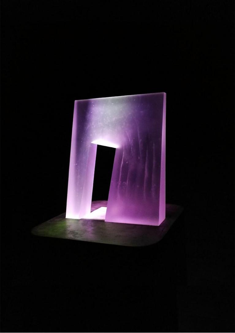 Chiara Dynys, Giuseppe’s Door, 2020-21. Scultura in vetro opalescente e luce proiettata.