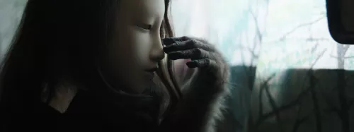 Pure Human Mask (2014), in pratica, è il risultato di un esperimento. Quello che fece un ristoratore giapponese nell’impiegare, come ultima possibilità per salvare la sua attività commerciale dal fallimento, delle scimmie come camerieri. Huyghe parte da questo spunto reale, per mettere lo spettatore di fronte alle conseguenze di scelte scellerate, che incidono profondamente sugli equilibri ambientali. Infatti, vestita come una cameriera, ma con indosso la caratteristica maschera bianca giapponese, che, solitamente, indica un fantasma, la scimmia appare come uno spettro che tristemente si aggira negli ambienti abbandonati di un ristorante situato nei dintorni della desolata Fukushima, all’indomani del terremoto e della catastrofe nucleare del 2011. Ma è il gigantesco video Camata (2024) quello che, maggiormente, dissimula la realtà, rendendo la finzione verosimile. Con uno sviluppo ipnotico, delle macchine sostenute da machine learning, perlustrano e indagano uno scheletro umano, rimasto insepolto nel deserto di Atacama. L’attività della robotica crea un film che si autogenera e si modifica all’infinito, come altrettanto muta il montaggio, senza un inizio e senza una fine.