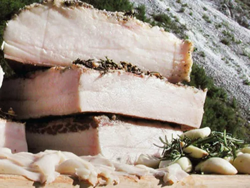 Soffriggere leggermente un pezzo di lardo nell'olio extra vergine d'oliva, quindi aggiungere due tazze di acqua, una spruzzata di origano e il sale. Cuocere quindi per circa dieci-quindici minuti. Unire le fette di pane tostato precedentemente preparato.