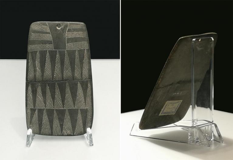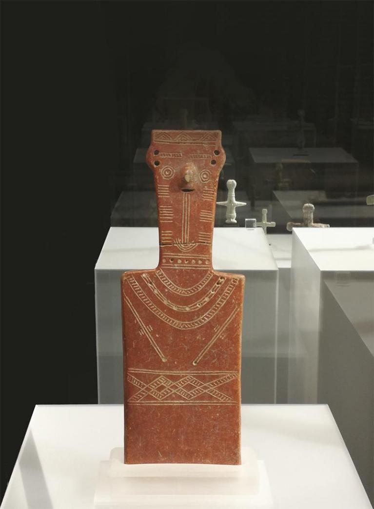 Idolo-placca. Neolitico tardo (IV millennio a.C.). Penisola iberica, Granja de Céspedes, Badajoz. Museo Arqueológico Nacional, Madrid).