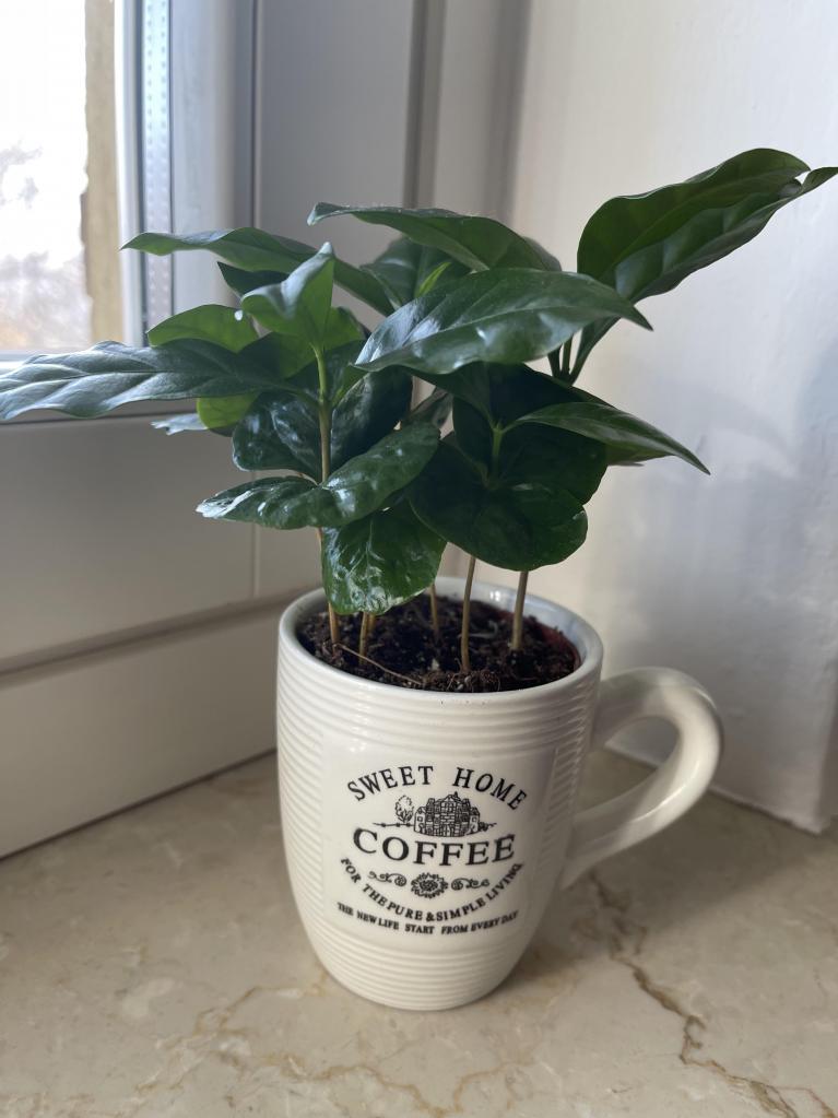 Ho dato il buongiorno al nuovo anno con una tazza di caffè. Penserete che non v’è nulla di eccezionale, e molto di prosaico. Ma il mug in questione conteneva non la bevanda bensì alcune piantine di caffè, varietà arabica. Lo esponeva un fioraio e vivaista come esotico e, a suo avviso, originale cadeau per le feste decembrine. L’ho acquistato per curiosità, pensando chissà se riesco non dico a vederle fiorire ma almeno a crescerle. Sono alte pochi centimetri eppure hanno già sei foglie ciascuna di un bel verde lucente, simili a quelle della gardenia.