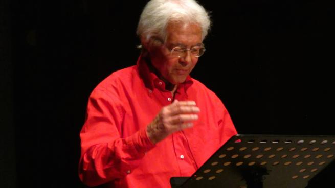 E allora decide di dare voce a qualcosa di più semplice, partendo dall’ultimo libro, di poemi teatrali e poesie, i Canti del guardare lontano (Einaudi), di spiegare la metrica della sua musica, del suo teatro della poesia, di portare l’ascoltatore nel suo laboratorio sonoro, musicale, dal 1964 al 2014. E scopre di essere uno degli autori italiani che più hanno collaborato con musicisti, da quei Diario italiano e La fabbrica illuminata scritti con Luigi Nono nel 1963-64 a opere composte con Sergio Liberovici, Fabio Vacchi, Carlo De Pirro, Claudio Ambrosini, Mauro Bonifacio, Aldo Sisillo, Mario Brunello, Mario Pagliarani, Luca Paccagnella, Michele Sambin, Gualtiero Bertelli e vari altri.