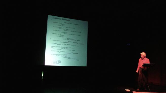 Lo abbiamo visto ancora una volta a Bologna, nel Dams dove ha insegnato per più di trent’anni, portando i suoi studenti in giro per paesi, montagne, strade della città, lanciando nei dintorni del Settantasette mongolfiere e facendo rinascere poeti, andando con i corpi nei testi, dentro gli scontri e i riflussi, fino agli anni duemila. Nel teatro del Dipartimento delle Arti racconta la sua avventura con la musica, con il suono, in una serata intitolata con una frase di Witold Gombrowicz che bene rappresenta la sua poetica e il suo percorso: Coloro insieme ai quali canti mutano il tuo canto.