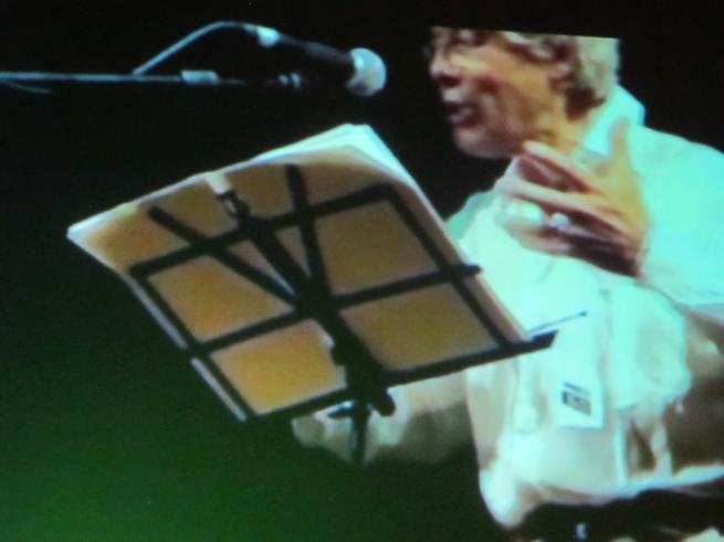 Narra, spiega, fa ascoltare. Mostra qualche video. Inizia proprio con la collaborazione con Nono, quando trasformò brani di interviste sulla vita di fabbrica, sull’allucinante fusione dell’acciaio a caldo e a freddo all’Italsider di Genova (la madre dell’Ilva di Taranto), quando trattò testimonianze sul disastro della diga del Vajont, le lotte alla Fiat e voci dalle strade di Palermo, in quel Diario italiano in cui il testo era una pre-musica, scomposto in fonemi, in grumi pesanti, stridenti, di vocali e consonanti, e la musica di Nono diventava parola gridata, sussurrata, deformata.