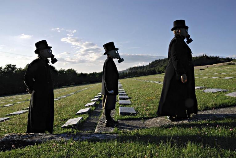 Da diciotto anni Archivio Zeta ha scelto come palcoscenico per i suoi spettacoli estivi un luogo fuori dell’ordinario, il Cimitero militare germanico della Futa appunto, dove sotto lastre tombali fitte lungo i pendii della collina sono sepolti molti militari tedeschi morti durante l’ultimo conflitto mondiale. Il luogo della pace di chi aveva portato furia e distruzione, tra i monti ventosi, con odori di menta e rosmarino d’estate, si è trasformato nell’arena amplissima dove rappresentare gli orrori e le meditazioni della tragedia greca, i misteri del Macbeth di Shakespeare, gli stermini e le tanta parole di propaganda della Grande Guerra mutando il sito in quel “teatro di Marte” di cui parlava Karl Kraus in Gli ultimi giorni dell’umanità (maschere antigas tra l’aria pura dei monti), e la terribile angoscia dell’uomo del sottosuolo Dostoevskij, l’anno scorso e quest’anno (tutto l’elenco degli spettacoli lo trovate qui).