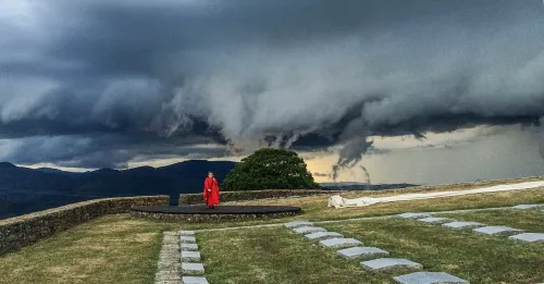 Quella collina lungo la Linea Gotica, piena di lapidi di 30.000 soldati morti col passo dell’invasore, culmina in un sacrario simile a ala ripiegata. In quella specie di tormentato Walhalla che pare disegnato da Adolphe Appia, lo scenografo che sognò un Wagner astratto, dal 2003 hanno organizzato, ogni agosto, la rappresentazione di una tragedia antica. Quest’anno hanno concluso l’Orestea di Eschilo con l’ultima opera del ciclo, Eumenidi (la trilogia completa sarà presentata l’anno prossimo).