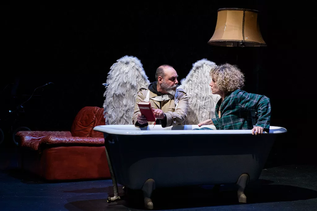 Insomma, un testo che oscilla forse troppo e in modo non risolto tra le sue molte anime, anche se ha il tratto di molti autori inglesi, di acutezza empatica e attenzione alla scrittura per tradurre la complessità del mondo contemporaneo. Anche per questo alla fine il cerchio dello spettacolo si chiude. Fluida anche la scelta di Plini di tenere gli affiatati e rodati interpreti della compagnia MaMiMò sempre in scena, anche quando non impegnati nella loro parte, dentro uno spazio scenografico che colloca la vicenda in un ambiente retrò, stile Old Europe, con una branda, un divano, una vasca con piedini, una vecchia biciletta e una lampada, quasi a suggerire l’idea che il collasso dell’Europa possa essere un terribile futuro dietro le spalle.