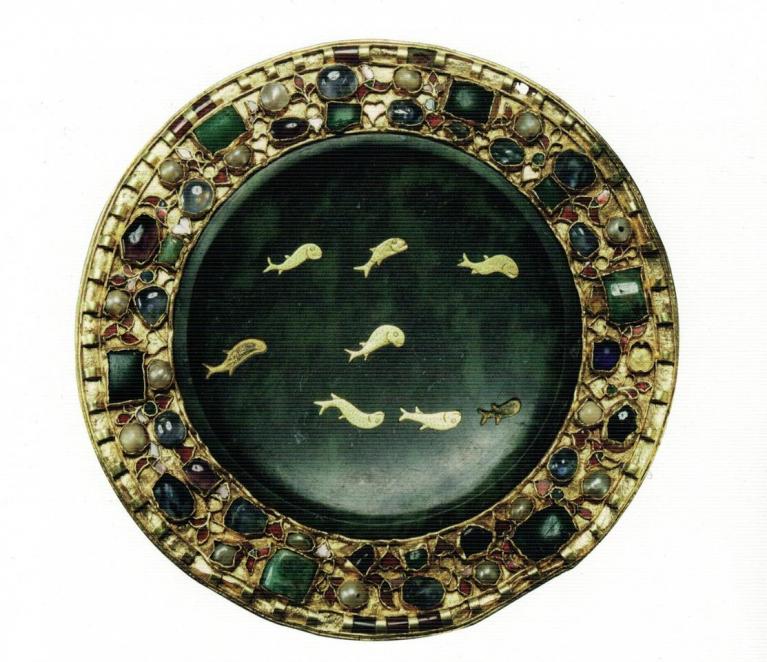 Patena in pietra serpentina (la parte interna risale al I sec., il cerchio esterno è opera della seconda metà del sec. XI), Musée du Louvre, Paris.