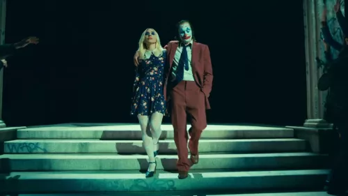 Motore di questa dinamica è Harley Lee Quinn (Lady Gaga). È la musica a farli incontrare, tra le mura del carcere: un laboratorio di coro. La relazione d’amore malata, ma insieme terapeutica, che Harley e Arthur intessono è inanellata su un filo di vecchie canzoni da big band, splendidamente arrangiate e grandiosamente interpretate da Lady Gaga e Phoenix. Folie à Deux non è un musical, come qualcuno frettolosamente ha sentenziato, ma è infarcito di allucinati duetti romantici, che lavorano per contrasto con l’orrore e la follia dell’ambientazione e dei personaggi. Il canto come terapia. E la cura sembra funzionare, anche se non nelle direzioni attese.