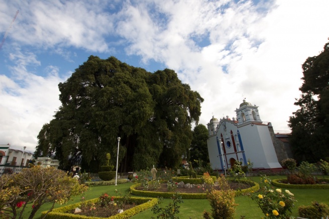 Abita la terra da duemila anni, forse da prima della nascita di Gesù Cristo, ma all’altro capo del mondo, presso civiltà antiche e sepolte quanto quelle mesopotamiche. È il cipresso di Montezuma che sovrasta la semplice chiesa di Santa Maria del Tule, in Messico. A pochi chilometri, le imponenti rovine zapoteche del sito archeologico di Monte Albán. Piramidi, palazzi, piazze, strappati alla natura, solitari e vuoti lassù, nel silenzio verde dell’altipiano, dominano la valle e la città: Oaxaca musicale e multicolore, sempre in festa, esorcizza così la morte incombente e l’inesorabile sentimento del tempo.