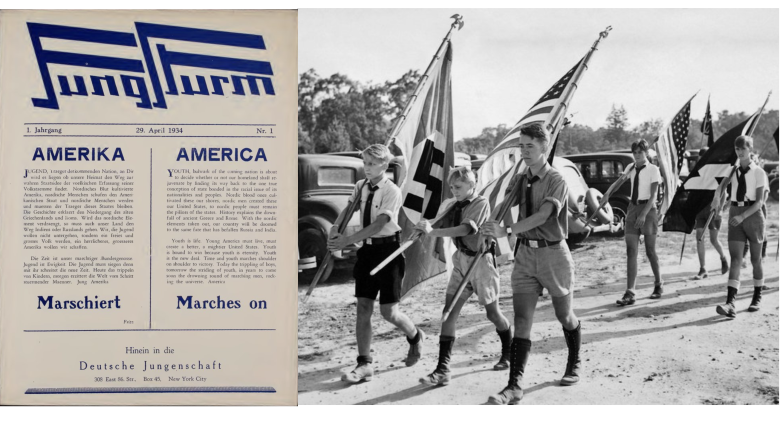 Il German-American Bund (Amerikadeutscher Volksbund) era un’organizzazione di “patrioti americani di stirpe tedesca, amici della nuova Germania”, nata a Chicago nel 1933, l’anno in cui Hitler era salito al potere, organizzata dall’immigrato tedesco Heinz Spanknöbel su richiesta del Reichsleiter Rudolf Hess. Organizzazione che tre anni più tardi si costituirà in una struttura capillare a perfetta imitazione di quella del partito nazista, al cui vertice sarà eletto, come Bundesführer, Fritz Julius Kuhn, un tedesco naturalizzato americano, veterano della Grande Guerra, che aveva lavorato, per un breve periodo, con l’industriale automobilistico Henry Ford con il quale condivideva forti sentimenti antisemiti.