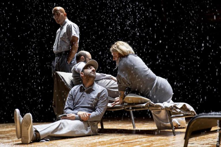 Tutti gli attori sono calati nelle parti. Qualche sbavatura, ogni tanto, non inficia il risultato e rafforza il plauso per un’impresa incubata in varie prove solistiche, determinata dalla volontà di un’artista che pensa e crea il teatro a non rassegnarsi alla fine del suo gruppo, le Fibre Parallele, e a cercare, rischiando, nuove strade. I bravi interpreti dei due ragazzi vengono da un laboratorio sul Roberto Zucco di Koltès, di cui abbiamo dato conto su doppiozero, per lo Stabile torinese e il Festival delle Colline di quella città. Sono l’elettrico Josef Gjura e la sensibile, appassionata, bravissima, Giulia Mazzarino. Loro compagni, di varia provenienza, tutti molto concentrati, sono Vittorio Continelli, Mino Decataldo, Alessandra Di Lernia, Marco Grossi, Fabio Mascagni. E naturalmente Licia Lanera, che in questo stesso periodo ha curato la riapertura dello storico teatro Piccinni della sua Bari con azioni di strada di giovani compagnie e con una serata dedicata a Eduardo De Filippo, recitato in barese da attori della città.