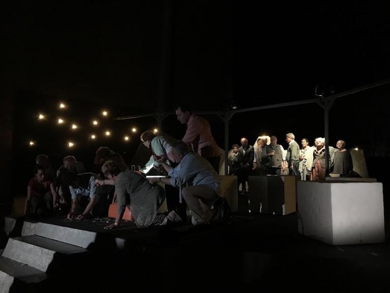 Un finale più aperto non si può dare. E questa – con il rovello, con il cammino per arrivarci, a volte accidentato, a volte intinto nel ricordo, nell’alleggerimento ridente della battuta caustica o ironica, nel contrasto – è la forza, che si rinnova ogni anno, del Teatro Povero di Monticchiello, tra colori di grano tagliato, terre gialle o bruciate, il verde del cipresso, dell’alloro, dell’olivo, le stelle e la luna.