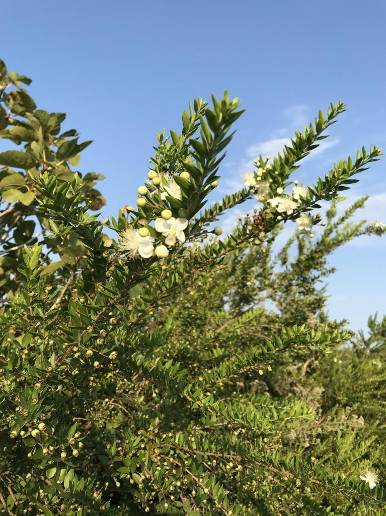 Questo frutice che dà nome alla famiglia di appartenenza – le Myrtaceae, la stessa di eucalipto, feijoa, callistemo, chiodi di garofano ecc. – evoca l’estate, il sole caldo che esalta le fragranze della macchia mediterranea, e l’amore, così come lo canta Ives Bonnefoy: