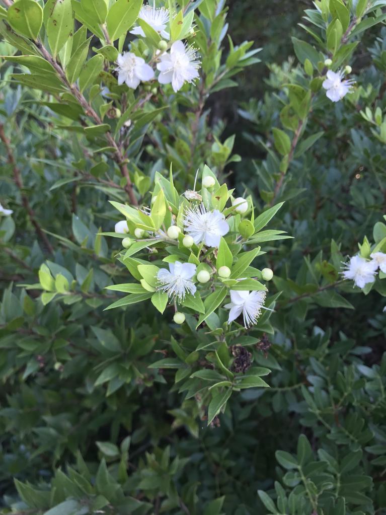 D'altronde, bello e seducente è il mirto per le fronde folte fin dal piede, per le opposte e coriacee foglioline aguzze di lucido verde e dal profumo resinoso, per i piccoli eppur copiosi fiori peduncolati dalle note d’agrume: cinque petali bianchi che riverberano il giallo delle antere sui lunghi stami che in molti s’affollano al centro, intorno allo stilo. E poi, le bacche: blu profondo, pruinose, coronate in apice dai residui del calice, che persistono sui rami da ottobre a gennaio e preda sono di uomini e uccelli, persino d’ungulati.