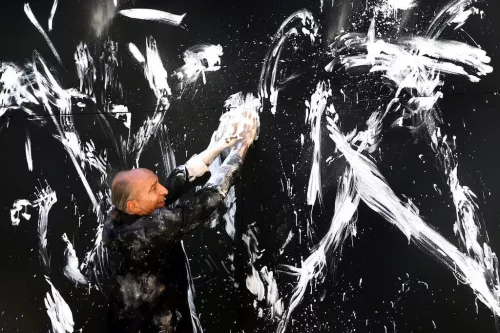 La ricerca è quella dell’arte astratta, avanzata già da quando la Compagnia della Fortezza rifletteva su Punto, linea, superficie di Kandinskij o sul colore puro di Yves Klein e sulle macchie di Rothko. Il finale è una action painting con danza di particelle subatomiche (le figure degli attori), di immagini incrostate di storia (d’arte e di vite) slanciate a inventare nuove traiettorie, sfidando la profondità del nostro destino, quello di tutti noi, ‘liberi’ e ‘carcerati’, ciò che ci è riservato dalle condizioni d’esistenza pregresse; per scoprire fin dove possiamo spingerci, a una “destinazione sconosciuta in cui nulla ci assomigli”. A un mondo diverso dal carcere-mondo, il nostro, che circonda il carcere penitenziario.