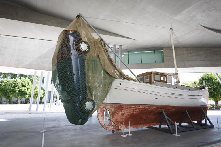 In occasione di questo grande riallestimento abbiamo ricevuto delle importanti donazioni, soprattutto dagli artisti stessi, tra cui quelle di Gianfranco Baruchello, Bruna Esposito, Mircea Cantor e Luca Maria Patella. Abbiamo inoltre una serie di prestiti e comodati dall’Archivio Agnetti, dalla Fondazione Nomas, dalla Fondazione Giuliani, dalla Collezione Pero e dalla Collezione Barillari. Non sono invece presenti opere commissionate per l’occasione perché, al di là delle nuove produzioni sempre importanti e necessarie e che vengono realizzate principalmente attraverso il programma espositivo, per me è fondamentale esporre opere con una storia rilevante alle spalle, una sorta di curriculum che, nel caso di opere di artisti stranieri, è anche una relazione con il contesto italiano. Per questa ragione le installazioni collocate recentemente sulla piazza hanno una loro storia espositiva: ad esempio, la barca di Elisabetta Benassi è stata realizzata per la Fondazione Merz e poi esposta a Torino a Palazzo Carignano, così come l’opera di Gianfranco Baruchello è stata concepita per il Padiglione Italia del 2013 ed è poi stata donata dall’artista al museo.