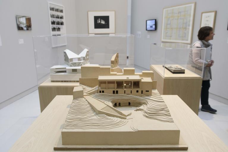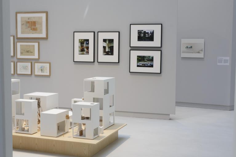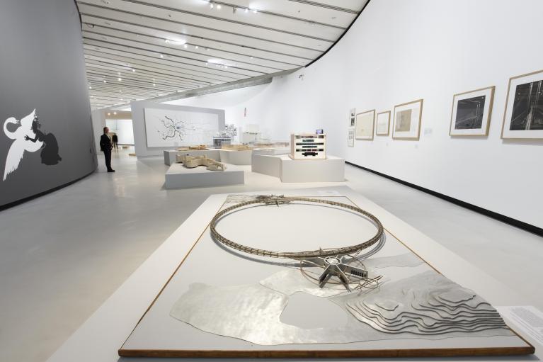 Da qui possiamo accedere al piano superiore, dove troviamo la nuova sala Claudia Gian Ferrari dedicata ad approfondimenti su singoli autori o artisti della collezione, in questo caso di Bruna Esposito. La prima sezione della collezione è dedicata allo spazio inteso come città, proponendo innanzitutto un focus della collezione di architettura su Roma con, tra gli altri, i modelli di progetti recenti come l’Auditorium di Renzo Piano, la nuvola di Massimiliano Fuksas, la moschea di Paolo Portoghesi. L’allestimento prosegue con le opere d’arte che riflettono sullo stesso tema come, tra le altre, l’installazione di Liliana Moro Città ideale, luogo inteso come spazio multiculturale o gli Sleepers di Francis Alys. Infine, la ricostruzione in scala 1:1 di una metà della White U di Toyo Ito, costruita per la sorella e poi distrutta, divide la sezione dedicata alla città dalla sezione dedicata alla casa che si sviluppa attraverso opere di Domenico Gnoli, Francesco Arena, Micol Assaël, Ilya e Emilia Kabakov, Oscar Tuazon e Elias Hansen.