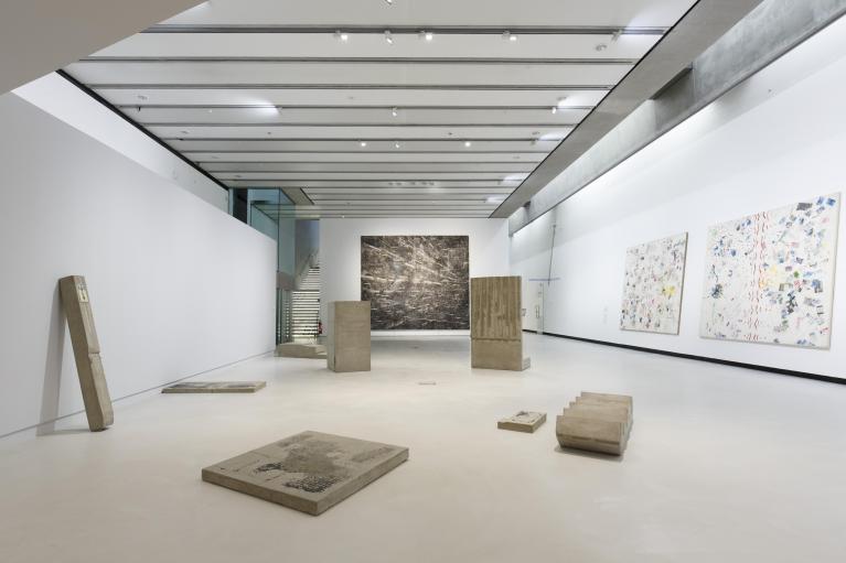 Per quanto riguarda invece il tema che ha dettato le scelte del primo riallestimento della collezione, abbiamo optato per approfondire una questione intrinseca al museo: la relazione con lo spazio, che in arte significa principalmente la relazione con il contesto, inteso sia come spazio espositivo site-specific, sia come spazio architettonico, sia come habitat. Al MAXXI tale relazione è particolarmente sentita perché l’architettura progettata da Zaha Hadid è già di per sé un segno molto forte e poi perché siamo di fronte a un museo non solo di arte ma anche di architettura che per di più ha prodotto e accolto numerose installazioni site-specific. In aggiunta, la relazione dell’opera con lo spazio costituisce una riflessione ricorrente nella storia dell’arte italiana contemporanea, dal Futurismo a oggi, con momenti importanti come negli anni Sessanta e Settanta con i movimenti dell’Arte povera, land art, site-specific, ecc… Da qui la scelta di esporre su una parete all’ingresso del museo – che sarà dedicata di volta in volta a uno degli archivi della collezione – alcuni materiali dall’archivio di Graziella Lonardi Buontempo relativi agli Incontri Internazionali d’Arte che presentano alcune delle mostre più importanti degli anni Settanta, da Contemporanea a Vitalità del negativo, sul tema dell’opera in relazione allo spazio, così da costituire un’appropriata introduzione al tema sviluppato dall’allestimento della collezione.
