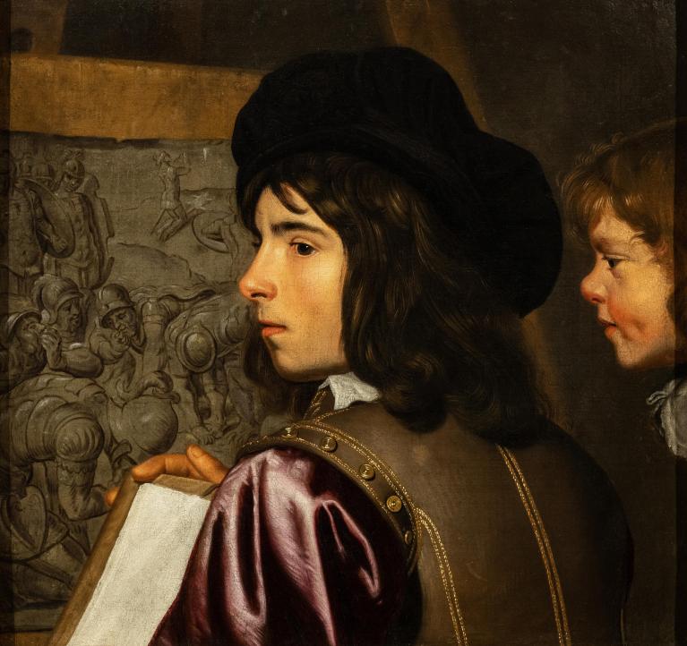 Jacob van Oost, Davanti al cavalletto, 1645, particolare