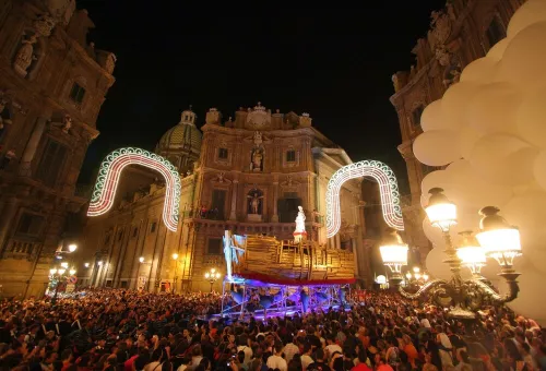 “È una festa alla povertà”, dice il venditore di libri usati di via Vittorio Emanuele all'indomani del festino. “Non è una festa, ma il racconto della festa”, rincara la dose il mio amico Nicolò che, come me, assiste per la prima volta al festino di Santa Rosalia, da 390 anni momento clou del culto della fanciulla nata intorno al 1128 che secondo la leggenda e la devozione popolare liberò dalla peste Palermo nel 1624.