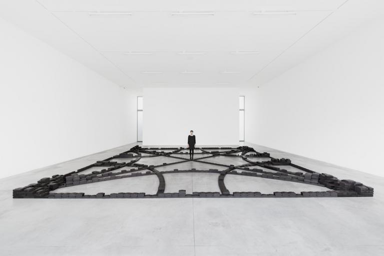 L’ideazione di un sistema resistente è atto creativo, 2016 Mattonelle di carbone, site specific installation 1000x900 cm Courtesy dell’Artista e Galleria Lia Rumma, Milano/Napoli ph. PEPE fotografia