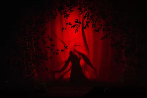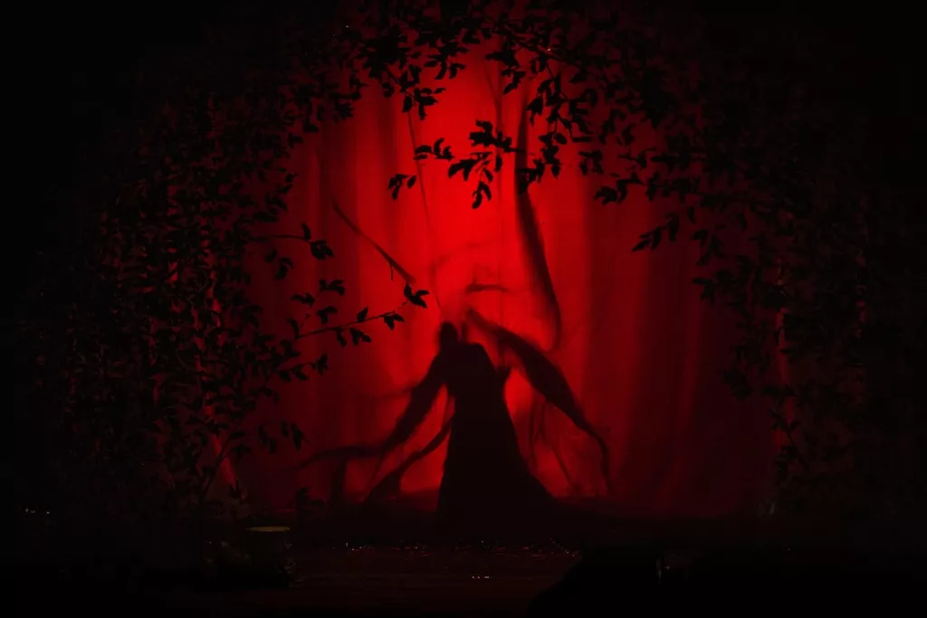 Per ‘mostrare’ la vertiginosa complessità di questa fiaba sottoposta a una metamorfosi che l’ha trasformata in racconto d’amore, Guidi – complice il magnifico scenografo, costumista e disegnatore di luci Vito Manera – ha voluto lo spazio di una foresta incantata, così vicina da lambire il pubblico e così lontana che pare di vederla attraverso la lente di un telescopio. La guardi e sei dentro, la riguardi e sei fuori: ti ci perdi e si perde.